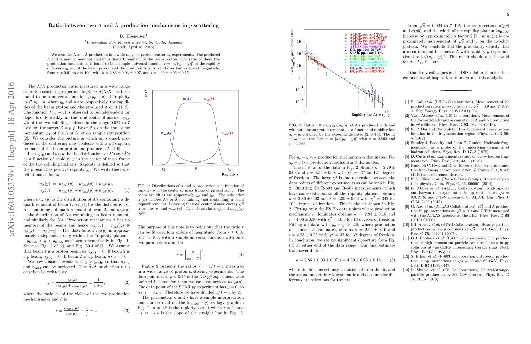We consider $\Lambda$ and $\bar{\Lambda}$ production in a wide range of proton scattering experiments. The produced $\Lambda$ and $\bar{\Lambda}$ may or may not contain a diquark remnant of the beam proton. The ratio of these two production mechanisms is found to be a simple universal function $r = [ \kappa/(y_p - y) ]^i$ of the rapidity difference $y_p - y$ of the beam proton and the produced $\Lambda$ or $\bar{\Lambda}$, valid over four orders of magnitude, from $r \approx 0.01$ to $r \approx 100$, with $\kappa = 2.86 \pm 0.03 \pm 0.07$, and $i = 4.39 \pm 0.06 \pm 0.15$.