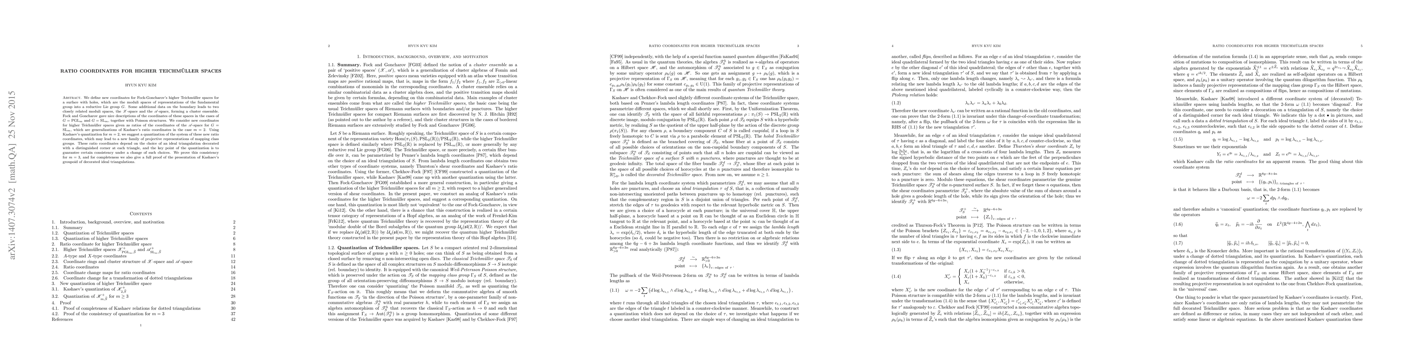 The paper introduces new ratio coordinates for higher Teichmüller spaces associated with surfaces having holes, which generalize Kashaev's ratio coordinates. These coordinates depend on ideal triangulations and suggest a quantization method that ensures consistency under triangulation changes, with proofs provided for $m=3$.