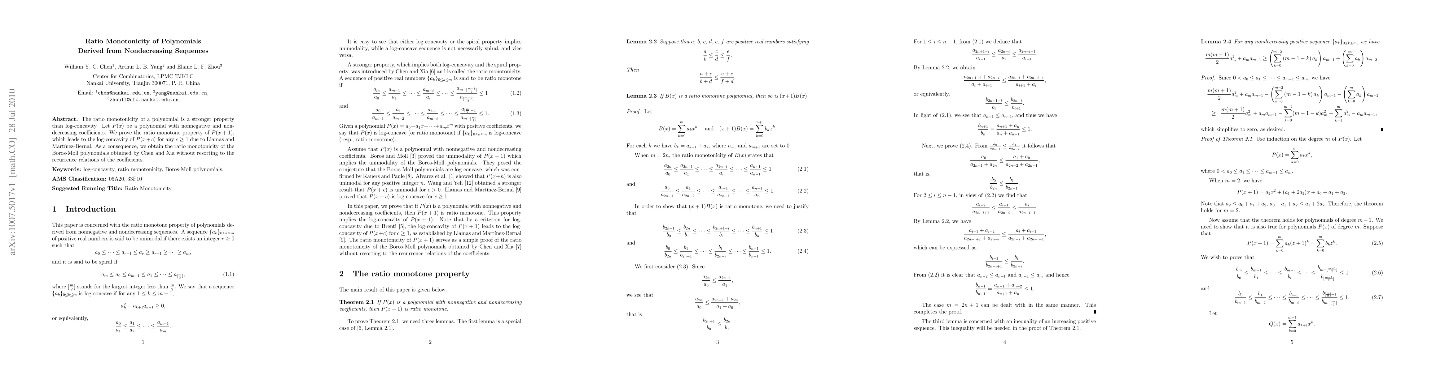 The ratio monotonicity of a polynomial is a stronger property than log-concavity. Let P(x) be a polynomial with nonnegative and nondecreasing coefficients. We prove the ratio monotone property of P(x+1), which leads to the log-concavity of P(x+c) for any $c\geq 1$ due to Llamas and Mart\'{\i}nez-Bernal. As a consequence, we obtain the ratio monotonicity of the Boros-Moll polynomials obtained by Chen and Xia without resorting to the recurrence relations of the coefficients.