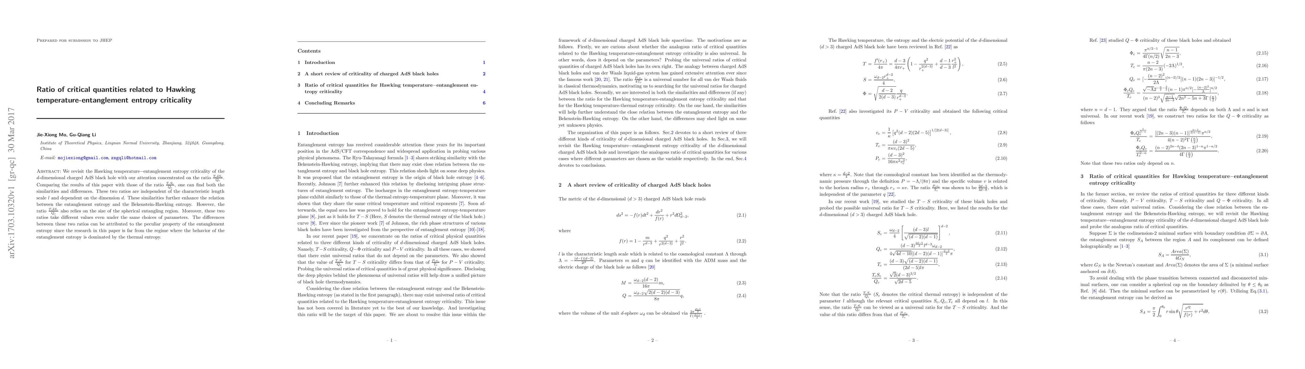 This paper examines the critical ratios $\frac{T_c \delta S_c}{Q_c}$ and $\frac{T_c S_c}{Q_c}$ for $d$-dimensional charged AdS black holes, finding both similarities and differences that enhance the relationship between entanglement entropy and Bekenstein-Hawking entropy. The ratios are independent of the characteristic length scale but dependent on the dimension and the size of the entangling region.