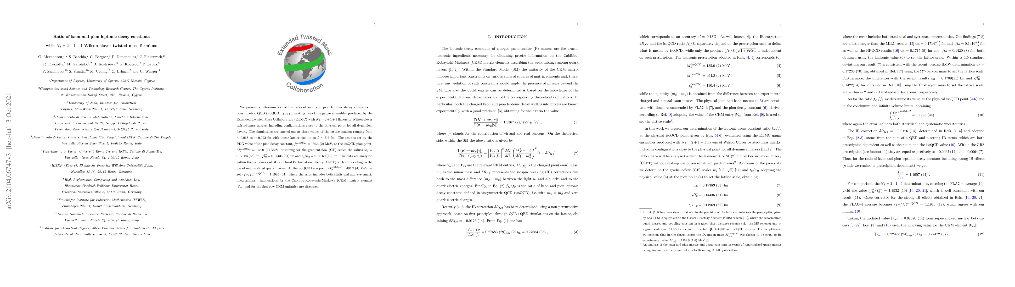 Researchers used a specific simulation method to measure the ratio of kaon and pion leptonic decay constants, finding a value of 1.1995 with an error margin, which has implications for understanding the Cabibbo-Kobayashi-Maskawa matrix element.