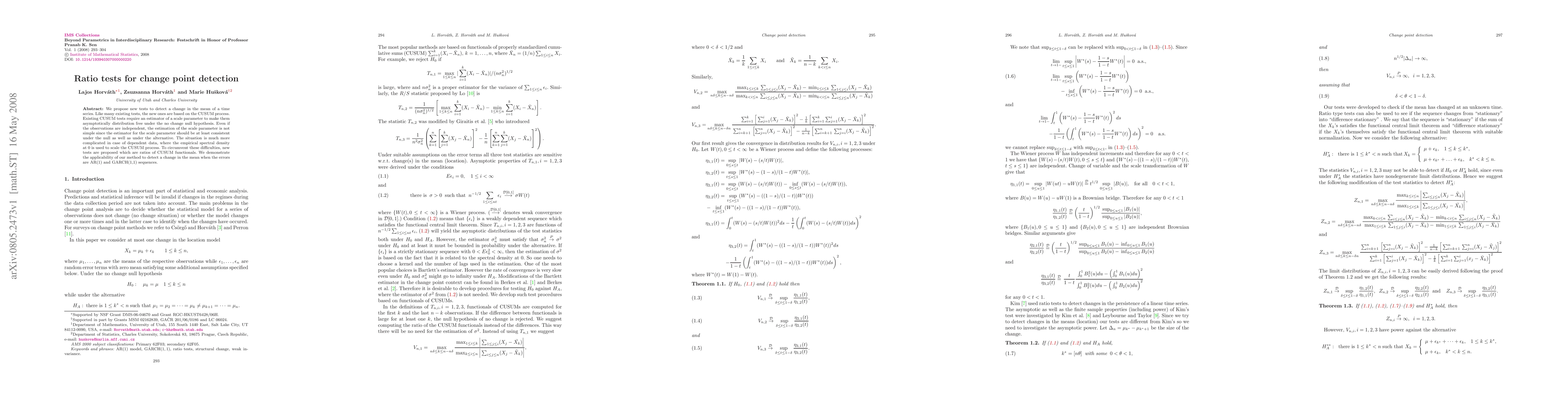 Researchers propose new tests to detect changes in a time series mean using ratios of CUSUM functionals, addressing limitations with existing methods and demonstrating applicability to AR(1) and GARCH(1,1) sequences.