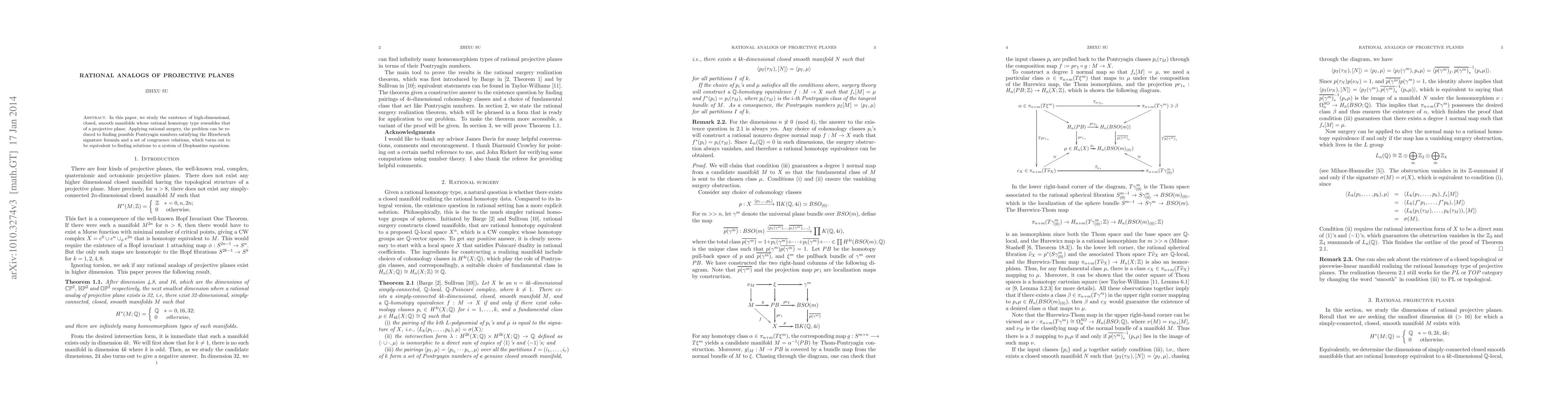 In this paper, we study the existence of high-dimensional, closed, smooth manifolds whose rational homotopy type resembles that of a projective plane. Applying rational surgery, the problem can be reduced to finding possible Pontryagin numbers satisfying the Hirzebruch signature formula and a set of congruence relations, which turns out to be equivalent to finding solutions to a system of Diophantine equations.
