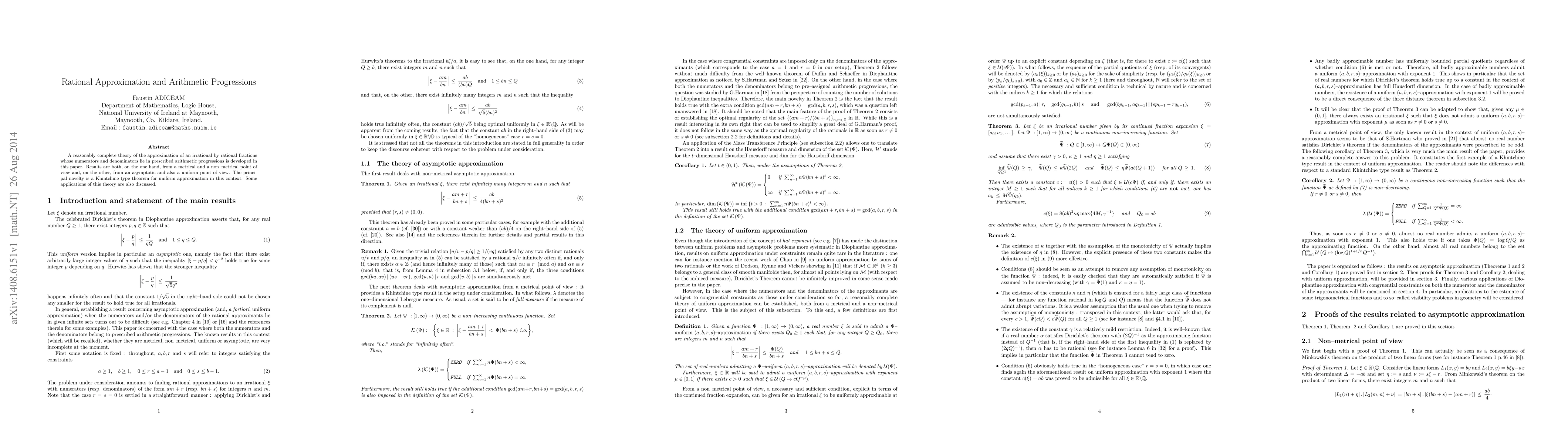 This paper develops a comprehensive theory for approximating irrational numbers by rational fractions whose numerators and denominators follow specific arithmetic progressions. It presents novel results from both metrical and non-metrical perspectives, including a Khintchine type theorem for uniform approximation, with applications discussed.