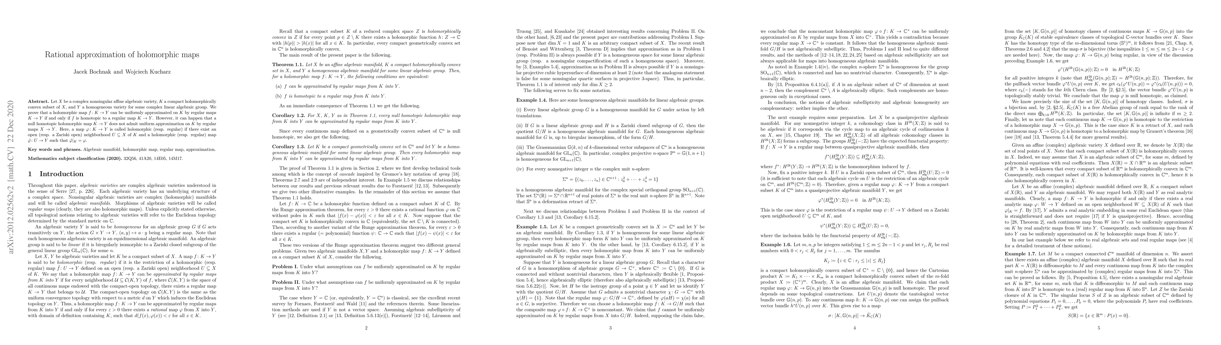 This research demonstrates that holomorphic maps from a holomorphically convex subset K of a complex nonsingular affine variety X to a homogeneous variety Y can be uniformly approximated by regular maps if and only if they are homotopic to such regular maps, but not all null homotopic holomorphic maps can be approximated by regular maps globally.