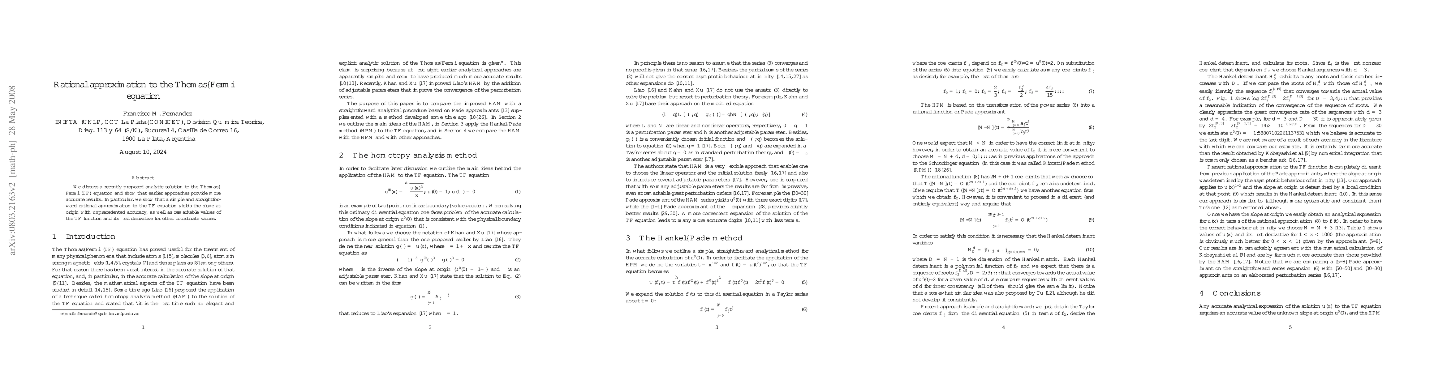 Summary: This paper presents a novel rational approximation method for the Thomas-Fermi equation, demonstrating exceptional accuracy in determining the slope at the origin, and compares its effectiveness to existing approaches.