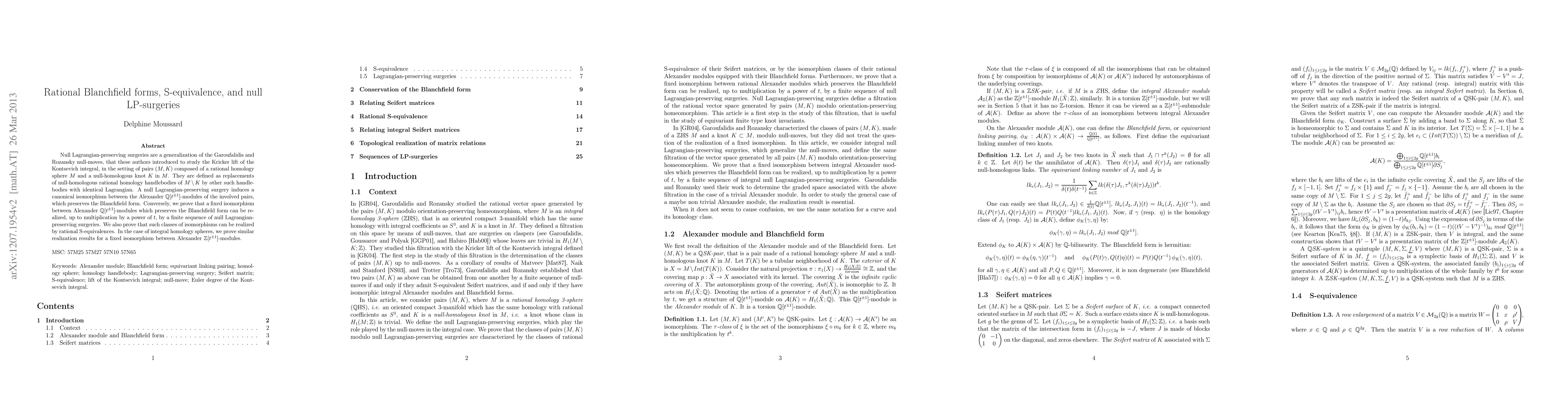 Null Lagrangian-preserving surgeries are a generalization of the Garoufalidis and Rozansky null-moves, that these authors introduced to study the Kricker lift of the Kontsevich integral, in the setting of pairs (M,K) composed of a rational homology sphere M and a null-homologous knot K in M. They are defined as replacements of null-homologous rational homology handlebodies of M\K by other such handlebodies with identical Lagrangian. A null Lagrangian-preserving surgery induces a canonical isomorphism between the rational Alexander modules of the involved pairs, which preserves the Blanchfield form. Conversely, we prove that a fixed isomorphism between rational Alexander modules which preserves the Blanchfield form can be realized, up to multiplication by a power of t, by a finite sequence of null Lagrangian-preserving surgeries. We also prove that such classes of isomorphisms can be realized by rational S-equivalences. In the case of integral homology spheres, we prove similar realization results for a fixed isomorphism between integral Alexander modules.