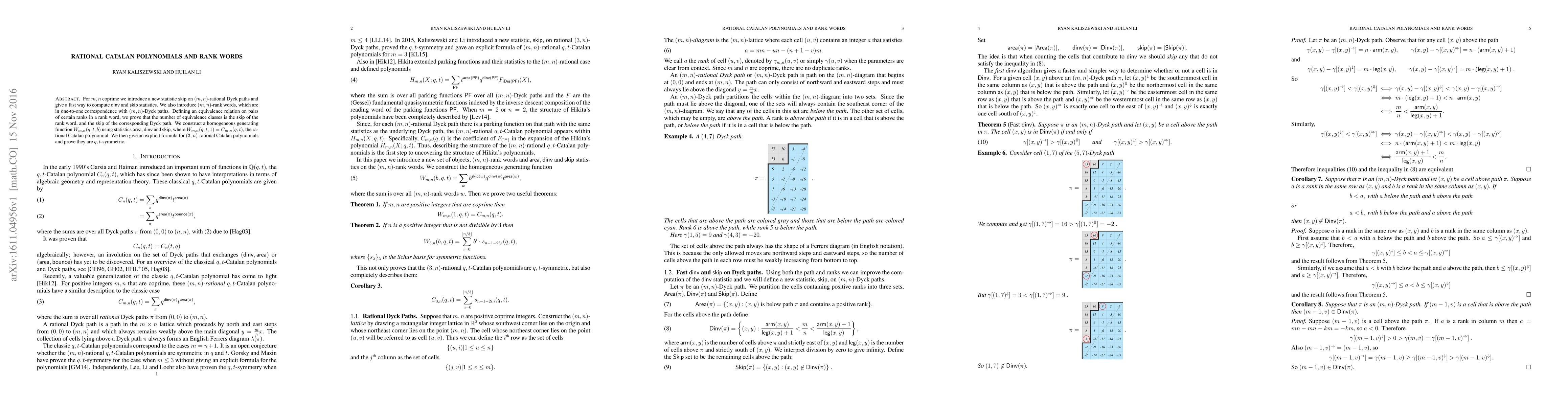Researchers introduce a new statistic and generating function for rational Catalan polynomials, which is related to Dyck paths and rank words, providing a new perspective on the symmetric property of these polynomials.
