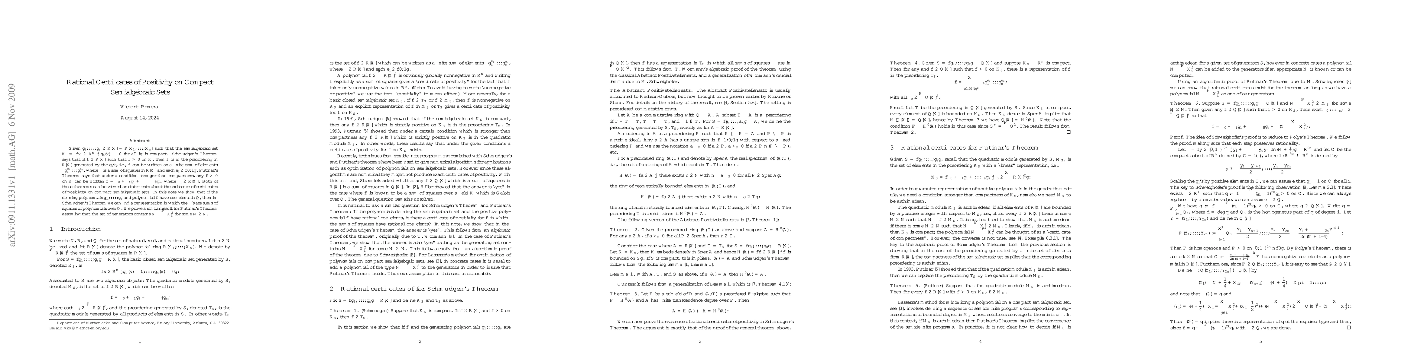 This work is novel because it provides new tools and techniques for solving problems on compact semi-algebraic sets, and demonstrates the existence of rational certificates for such sets.