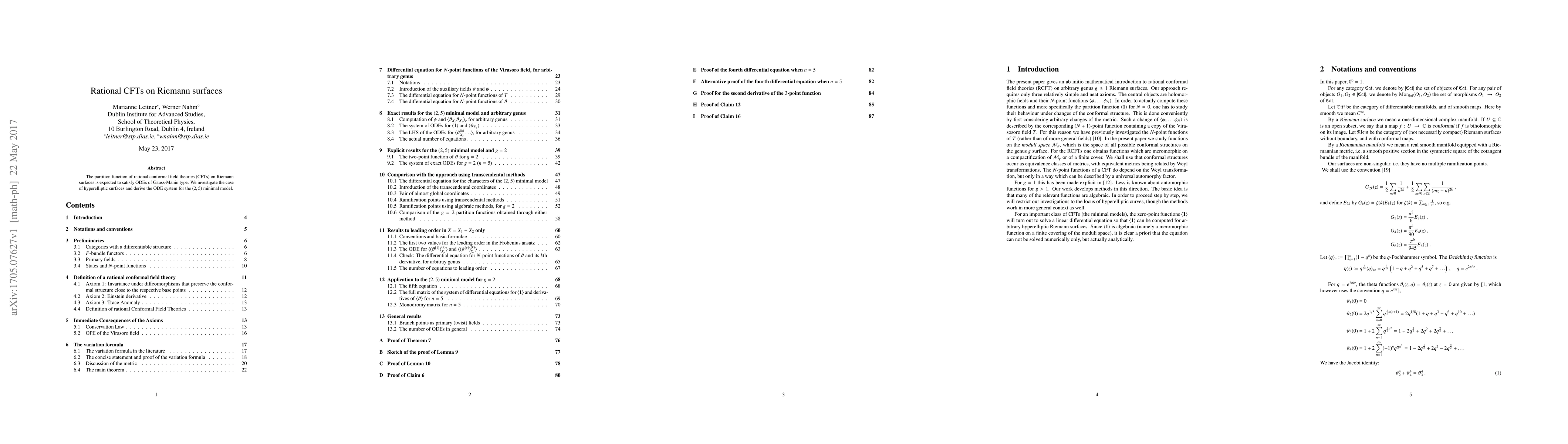 Summary: This paper explores the partition function of rational conformal field theories on hyperelliptic Riemann surfaces, focusing on the $(2,5)$ minimal model to derive a system of Gauss-Manin type ordinary differential equations.
