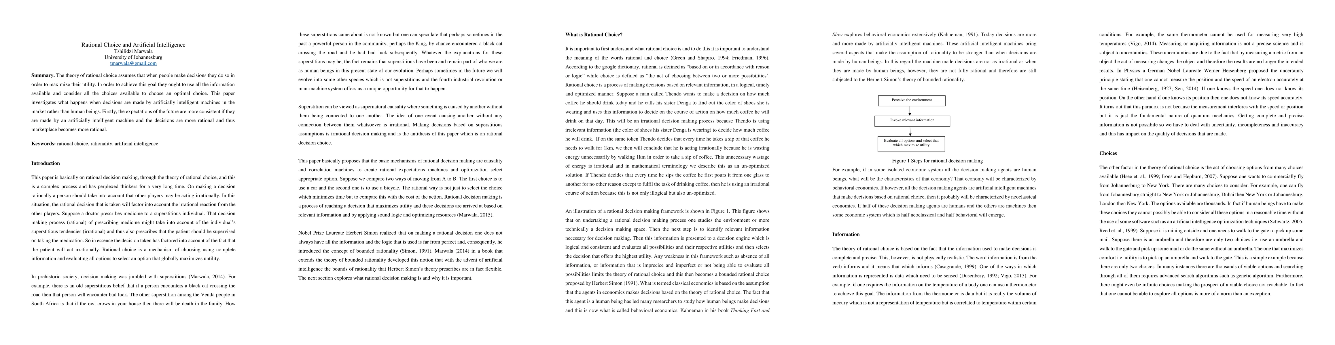 The theory of rational choice assumes that when people make decisions they do so in order to maximize their utility. In order to achieve this goal they ought to use all the information available and consider all the choices available to choose an optimal choice. This paper investigates what happens when decisions are made by artificially intelligent machines in the market rather than human beings. Firstly, the expectations of the future are more consistent if they are made by an artificially intelligent machine and the decisions are more rational and thus marketplace becomes more rational.