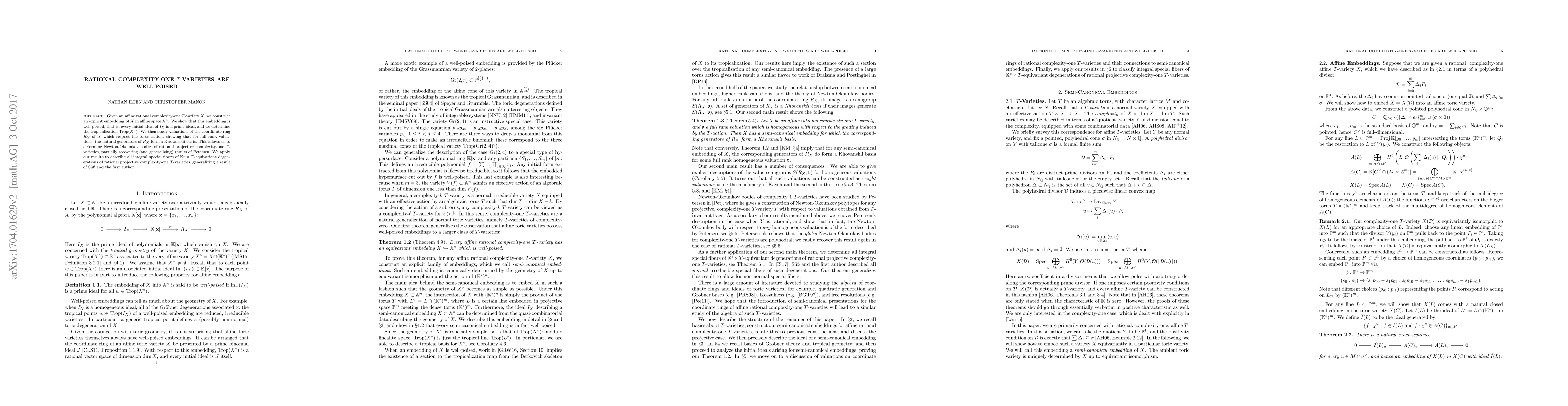 This paper constructs explicit embeddings for rational complexity-one $T$-varieties in affine space, proving they are well-poised and determining their tropicalization. It further explores valuations that respect the torus action, establishing Khovanskii bases and Newton-Okounkov bodies, and generalizes results on special fibers of $\mathbb{K}^*\times T$-equivariant degenerations.