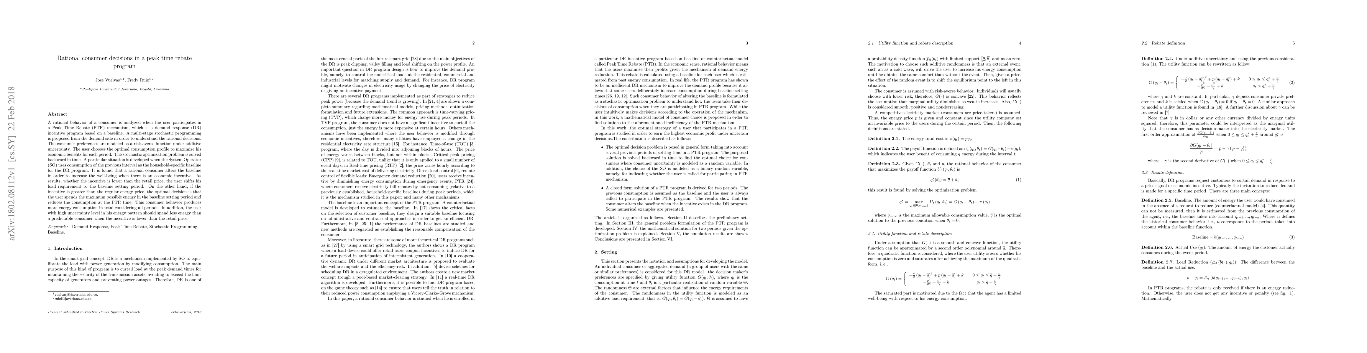 A rational behavior of a consumer is analyzed when the user participates in a Peak Time Rebate (PTR) mechanism, which is a demand response (DR) incentive program based on a baseline. A multi-stage stochastic programming is proposed from the demand side in order to understand the rational decisions. The consumer preferences are modeled as a risk-averse function under additive uncertainty. The user chooses the optimal consumption profile to maximize his economic benefits for each period. The stochastic optimization problem is solved backward in time. A particular situation is developed when the System Operator (SO) uses consumption of the previous interval as the household-specific baseline for the DR program. It is found that a rational consumer alters the baseline in order to increase the well-being when there is an economic incentive. As results, whether the incentive is lower than the retail price, the user shifts his load requirement to the baseline setting period. On the other hand, if the incentive is greater than the regular energy price, the optimal decision is that the user spends the maximum possible energy in the baseline setting period and reduces the consumption at the PTR time. This consumer behavior produces more energy consumption in total considering all periods. In addition, the user with high uncertainty level in his energy pattern should spend less energy than a predictable consumer when the incentive is lower than the retail price.
