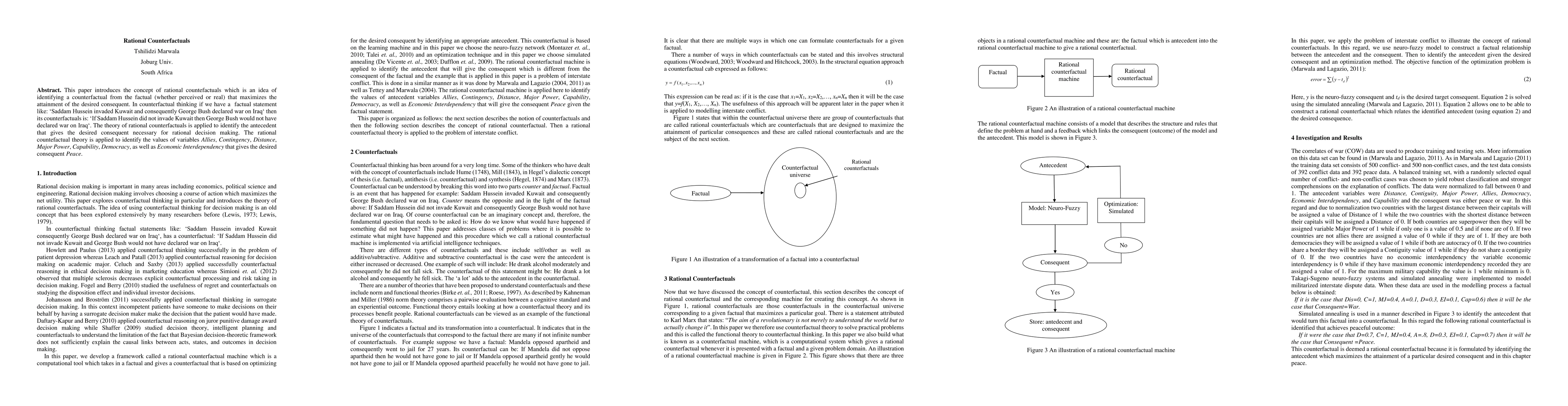 This paper proposes the concept of rational counterfactuals to identify the most effective antecedents that can lead to desired outcomes, such as peace, by analyzing variables like Allies, Contingency, and Economic Interdependency. The theory is applied to decision-making scenarios, such as the hypothetical impact of Saddam Hussein's invasion on George Bush's decision to declare war.