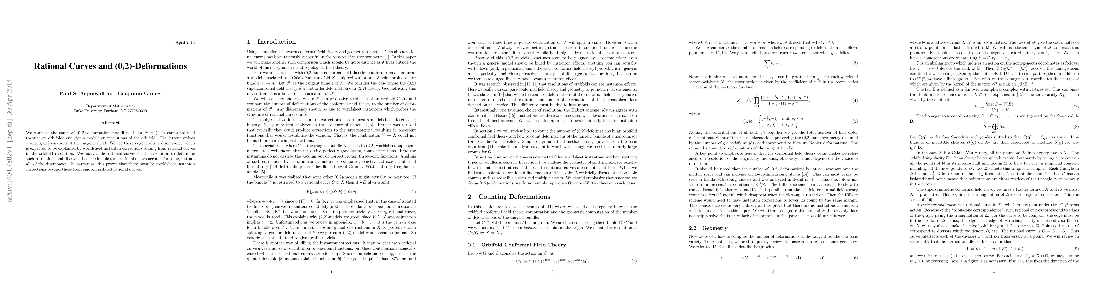 We compare the count of (0,2)-deformation moduli fields for N=(2,2) conformal field theories on orbifolds and sigma-models on resolutions of the orbifold. The latter involves counting deformations of the tangent sheaf. We see there is generally a discrepancy which is expected to be explained by worldsheet instanton corrections coming from rational curves in the orbifold resolution. We analyze the rational curves on the resolution to determine such corrections and discover that irreducible toric rational curves account for some, but not all, of the discrepancy. In particular, this proves that there must be worldsheet instanton corrections beyond those from smooth isolated rational curves.