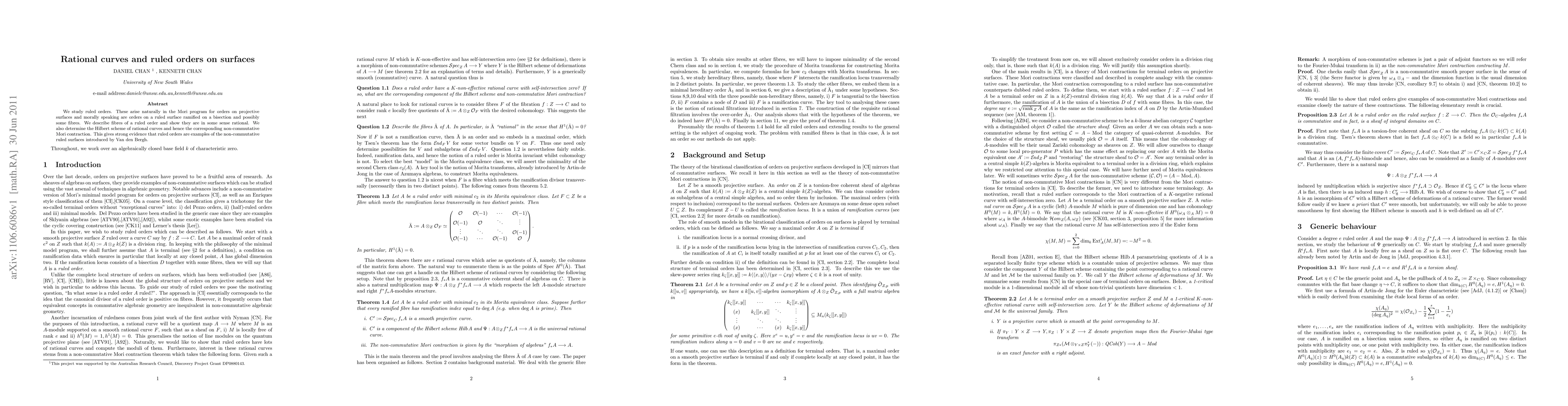 This paper investigates ruled orders on projective surfaces, demonstrating their rational nature and linking them to non-commutative ruled surfaces, thereby supporting their classification as examples of Van den Bergh's non-commutative ruled surfaces. It also determines the Hilbert scheme of rational curves and the associated non-commutative Mori contraction.