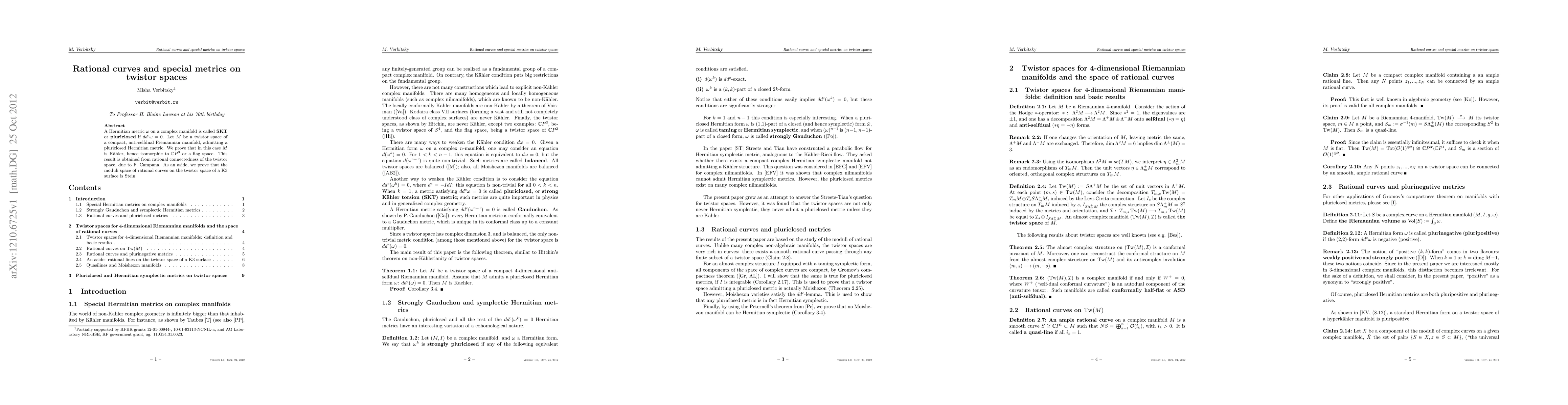 A Hermitian metric $\omega$ on a complex manifold is called SKT or pluriclosed if $dd^c\omega=0$. Let M be a twistor space of a compact, anti-selfdual Riemannian manifold, admitting a pluriclosed Hermitian metric. We prove that in this case M is K\"ahler, hence isomorphic to $\C P^3$ or a flag space. This result is obtained from rational connectedness of the twistor space, due to F. Campana. As an aside, we prove that the moduli space of rational curves on the twistor space of a K3 surface is Stein.