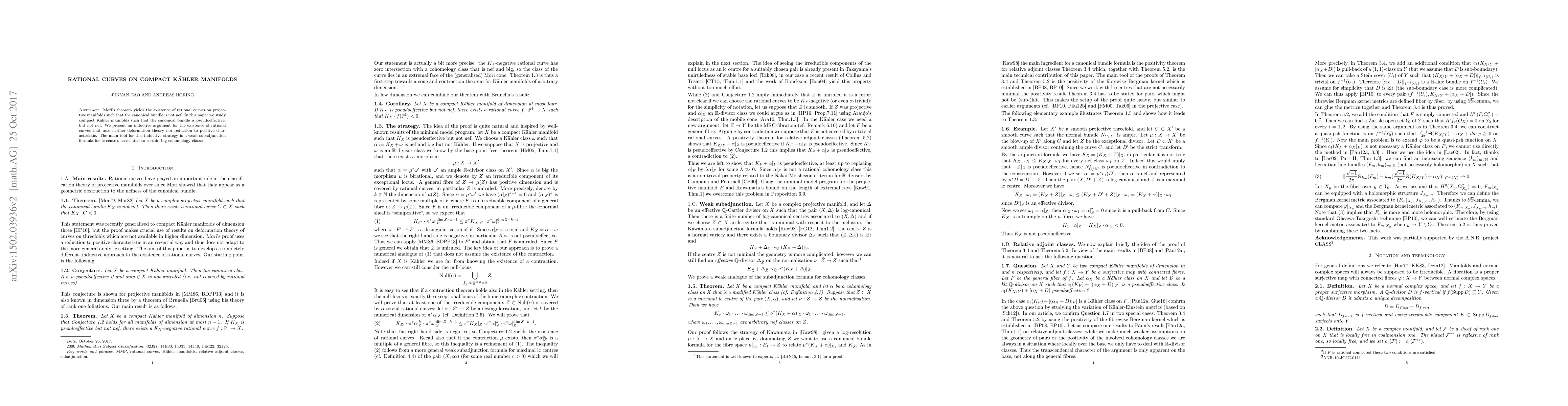 We present an inductive strategy to show the existence of rational curves on compact Kaehler manifolds which are not minimal models but have a pseudoeffective canonical bundle. The tool for this inductive strategy is a weak subadjunction formula for lc centers associated to certain big cohomology classes. This subadjunction formula is based, as in the projective case, on positivity arguments for relative adjoint classes.
