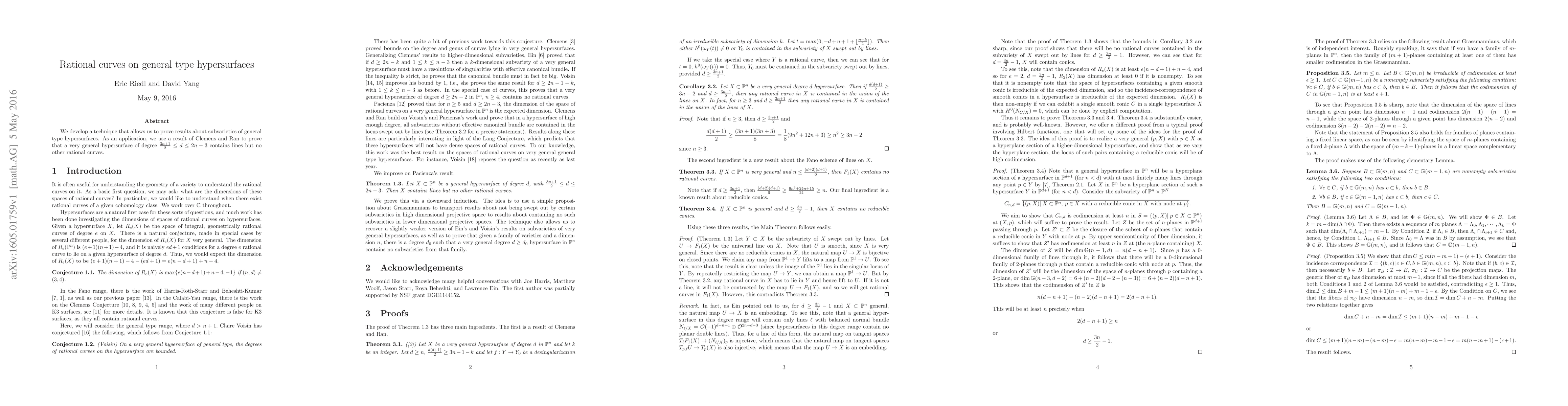 The research develops a technique to prove results about subvarieties of general type hypersurfaces, utilizing Clemens and Ran's result.