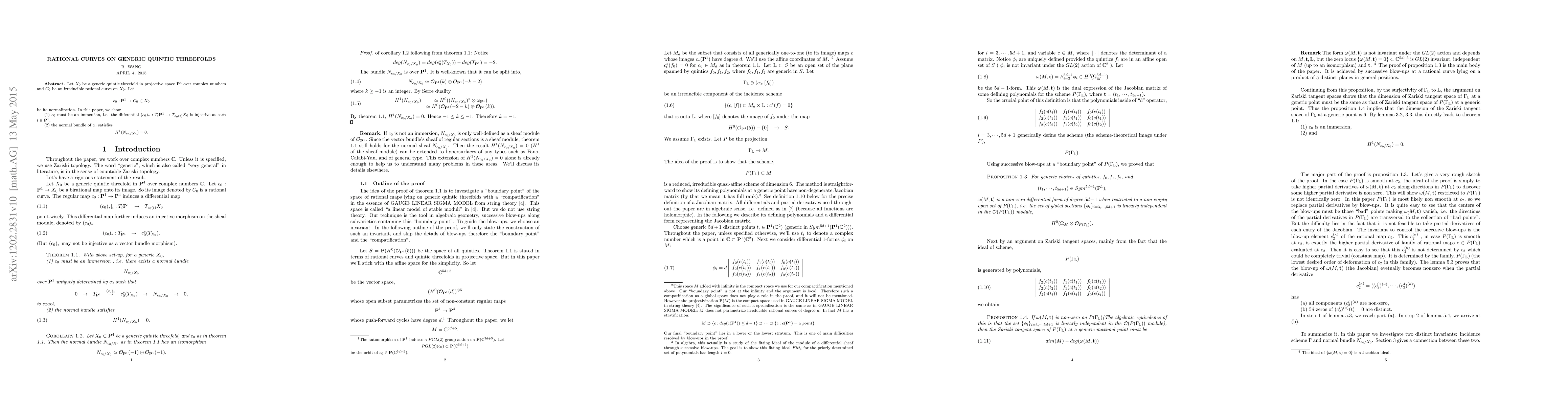 Let $X_0$ be a generic quintic threefold in projective space $\mathbf P^4$ over complex numbers and $C_0$ be an irreducible rational curve on $X_0$. Let $$c_0: \mathbf P^1\to C_0\subset X_0$$ be its normalization. In this paper, we show (1) $c_0$ must be an immersion, i.e. the differential $(c_0)_\ast: T_{t}\mathbf P^1 \to T_{c_0(t)} X_0$ is injective at each $t\in \mathbf P^1$, (2) the normal bundle of $c_0$ satisfies $$H^1(N_{c_0/X_0})=0.$$