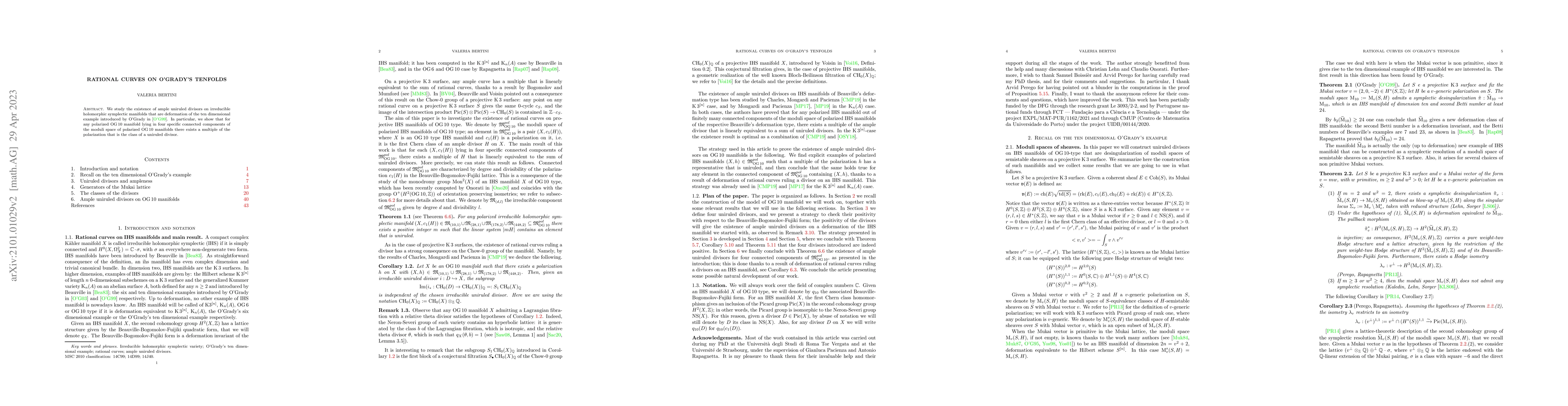 This paper investigates the presence of ample uniruled divisors on O'Grady's ten-dimensional irreducible holomorphic symplectic manifolds, proving that in four specific moduli space components, a multiple of the polarization class corresponds to a uniruled divisor. The findings provide insights into the structure of these complex geometric objects.