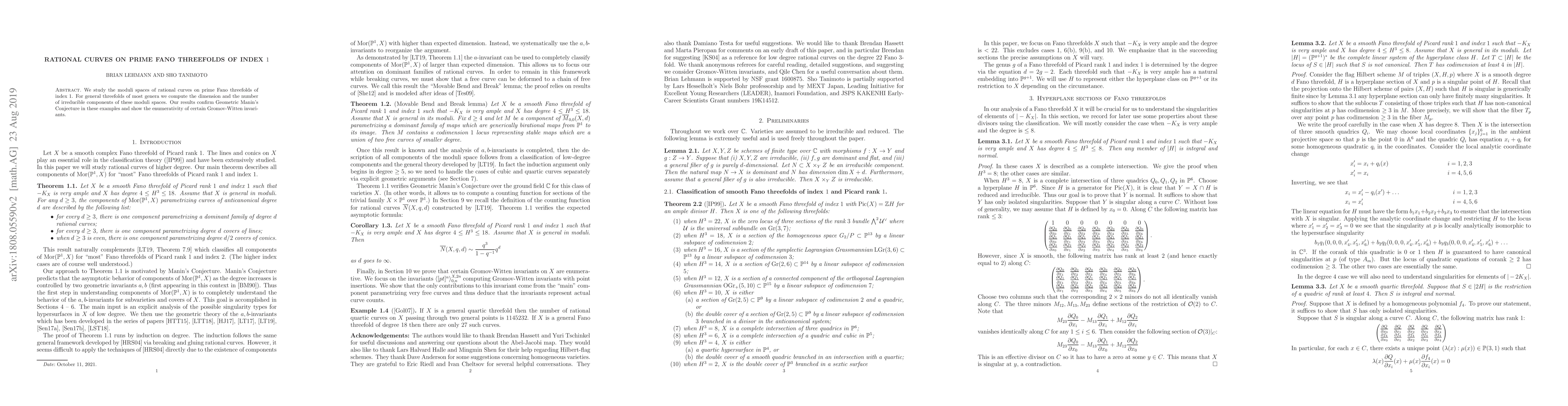 This paper investigates moduli spaces of rational curves on prime Fano threefolds of index 1, computing their dimensions and irreducible components, thereby confirming Geometric Manin's Conjecture and demonstrating the enumerativity of specific Gromov-Witten invariants.