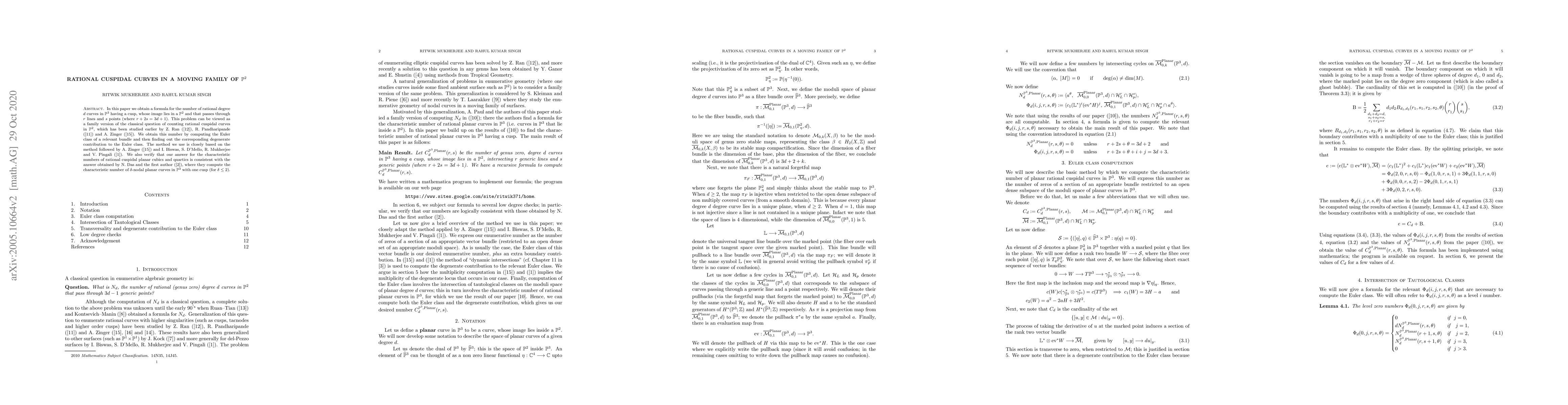 This paper provides a formula for the number of rational degree d curves in $\mathbb{P}^3$ with cusps, lying in $\mathbb{P}^2$, passing through $r$ lines and $s$ points under specified conditions. The approach involves computing the Euler class of a relevant bundle and verifying consistency with earlier results on rational cuspidal planar cubics and quartics.