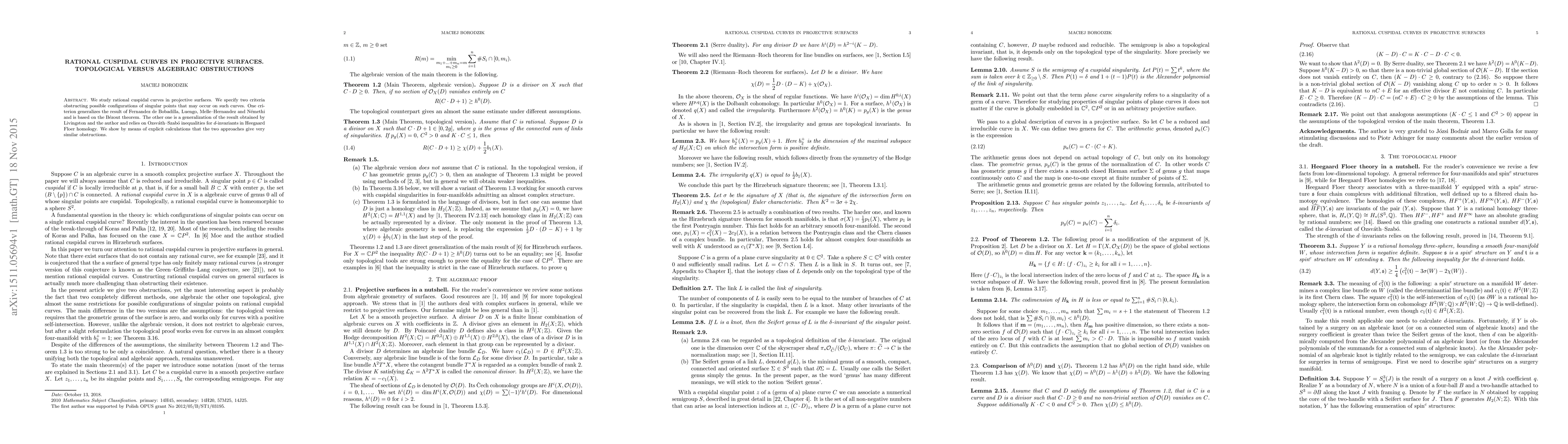 This paper investigates rational cuspidal curves in projective surfaces, identifying two criteria that obstruct their singular configurations. One criterion uses Bezout's theorem, while the other employs Ozsvath-Szabo inequalities in Heegaard Floer homology, demonstrating that both approaches yield similar obstructions.