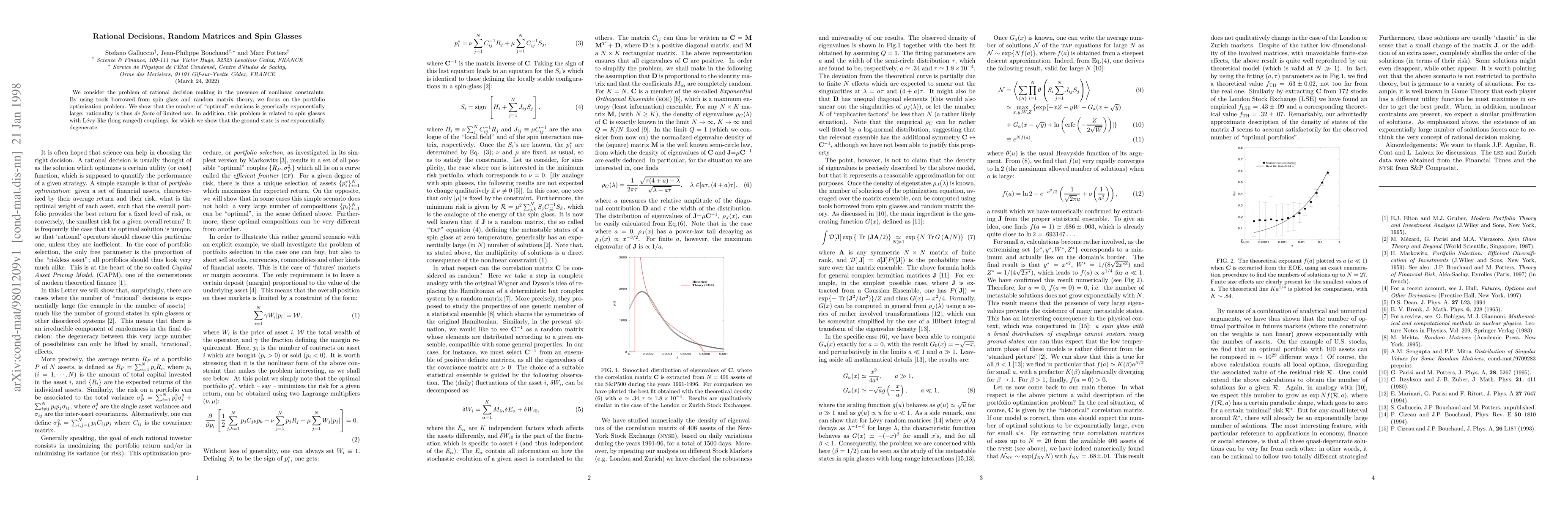 We consider the problem of rational decision making in the presence of nonlinear constraints. By using tools borrowed from spin glass and random matrix theory, we focus on the portfolio optimisation problem. We show that the number of ``optimal'' solutions is generically exponentially large: rationality is thus de facto of limited use. In addition, this problem is related to spin glasses with L\'evy-like (long-ranged) couplings, for which we show that the ground state is not exponentially degenerate.