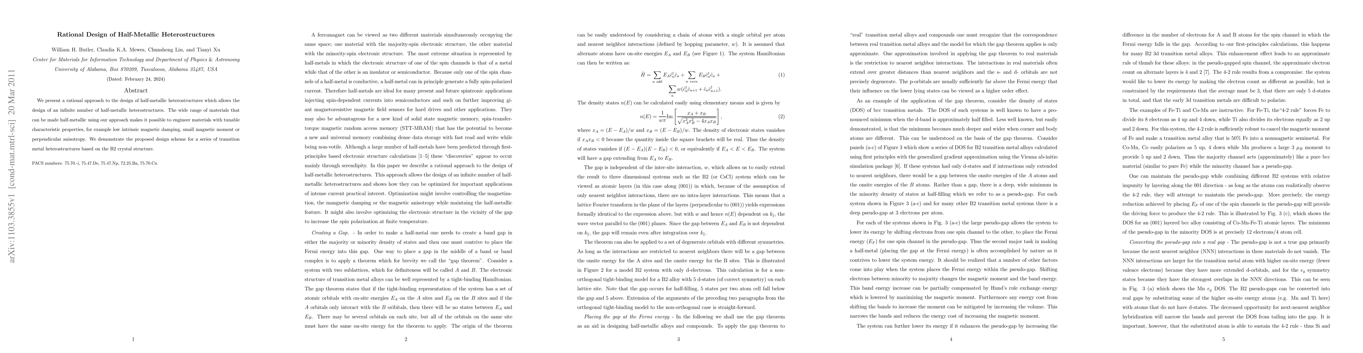 We present a rational approach to the design of half-metallic heterostructures which allows the design of an infinite number of half-metallic heterostructures. The wide range of materials that can be made half-metallic using our approach makes it possible to engineer materials with tunable characteristic properties, for example low intrinsic magnetic damping, small magnetic moment or perpendicular anisotropy. We demonstrate the proposed design scheme for a series of transition metal heterostructures based on the B2 crystal structure.