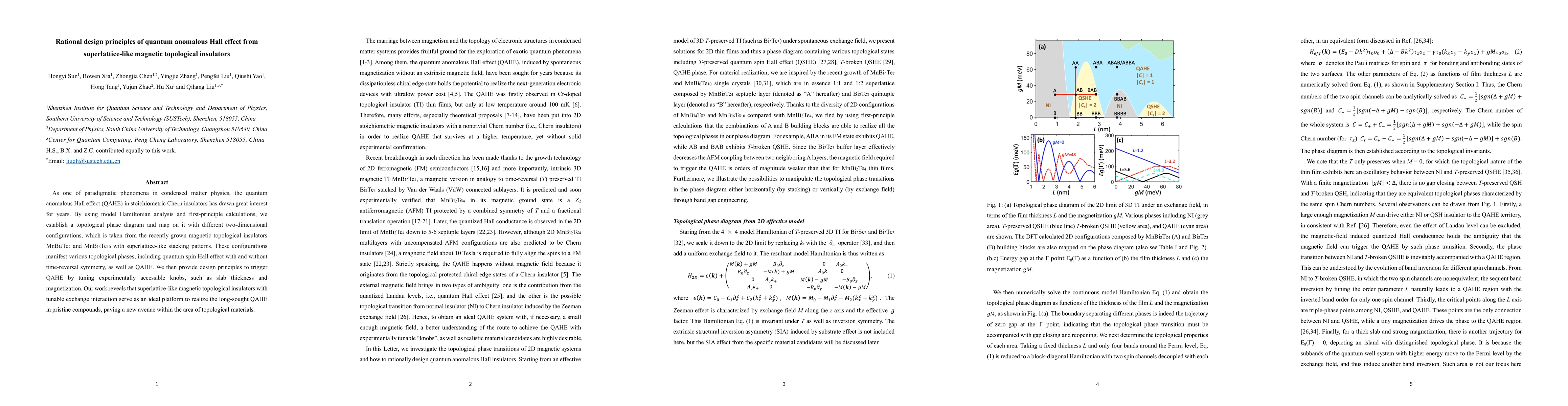 As one of paradigmatic phenomena in condensed matter physics, the quantum anomalous Hall effect (QAHE) in stoichiometric Chern insulators has drawn great interest for years. By using model Hamiltonian analysis and first-principle calculations, we establish a topological phase diagram and map on it with different two-dimensional configurations, which is taken from the recently-grown magnetic topological insulators MnBi4Te7 and MnBi6Te10 with superlattice-like stacking patterns. These configurations manifest various topological phases, including quantum spin Hall effect with and without time-reversal symmetry, as well as QAHE. We then provide design principles to trigger QAHE by tuning experimentally accessible knobs, such as slab thickness and magnetization. Our work reveals that superlattice-like magnetic topological insulators with tunable exchange interaction serve as an ideal platform to realize the long-sought QAHE in pristine compounds, paving a new avenue within the area of topological materials.
