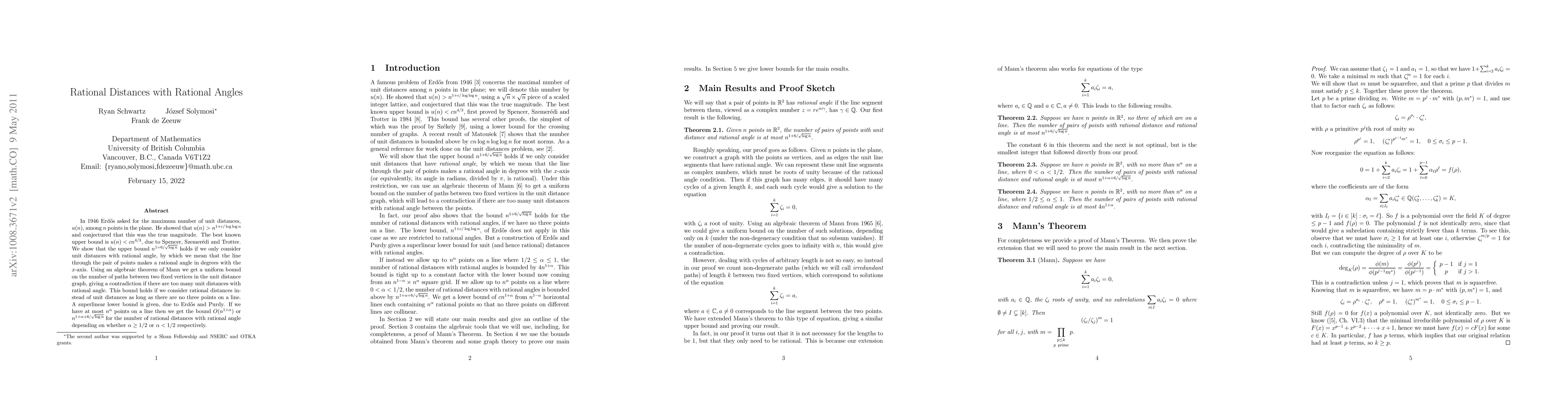 This paper investigates the maximum number of unit distances between points in the plane where the angles formed are rational. It establishes an upper bound of $n^{1+6/\sqrt{\log n}}$ for such distances, contrasting with the known upper bound for all unit distances. The result leverages an algebraic theorem and provides a superlinear lower bound, contingent on the number of collinear points.