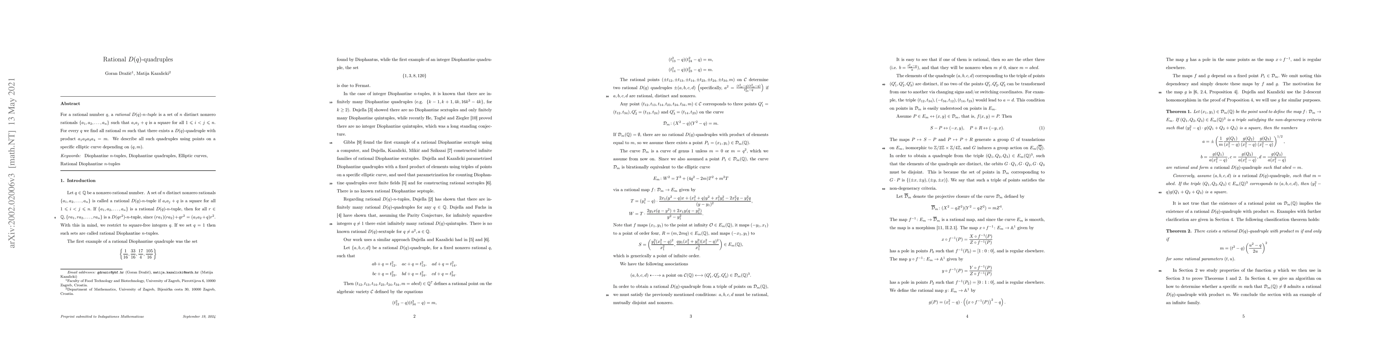 This paper investigates rational $D(q)$-quadruples, sets of four distinct nonzero rationals where the product of any two elements plus $q$ forms a rational square. The authors identify all rational values of $m$ for which such quadruples exist and describe these quadruples via points on an elliptic curve dependent on $(q, m)$.