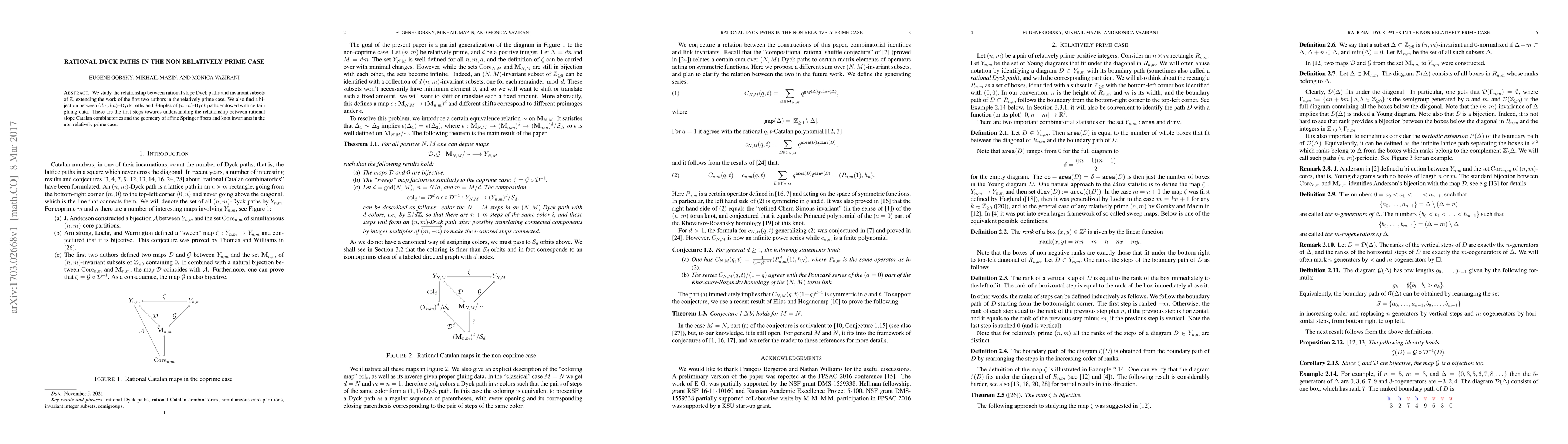 We study the relationship between rational slope Dyck paths and invariant subsets of $\mathbb Z,$ extending the work of the first two authors in the relatively prime case. We also find a bijection between $(dn,dm)$--Dyck paths and $d$-tuples of $(n,m)$-Dyck paths endowed with certain gluing data. These are the first steps towards understanding the relationship between rational slope Catalan combinatorics and the geometry of affine Springer fibers and knot invariants in the non relatively prime case.