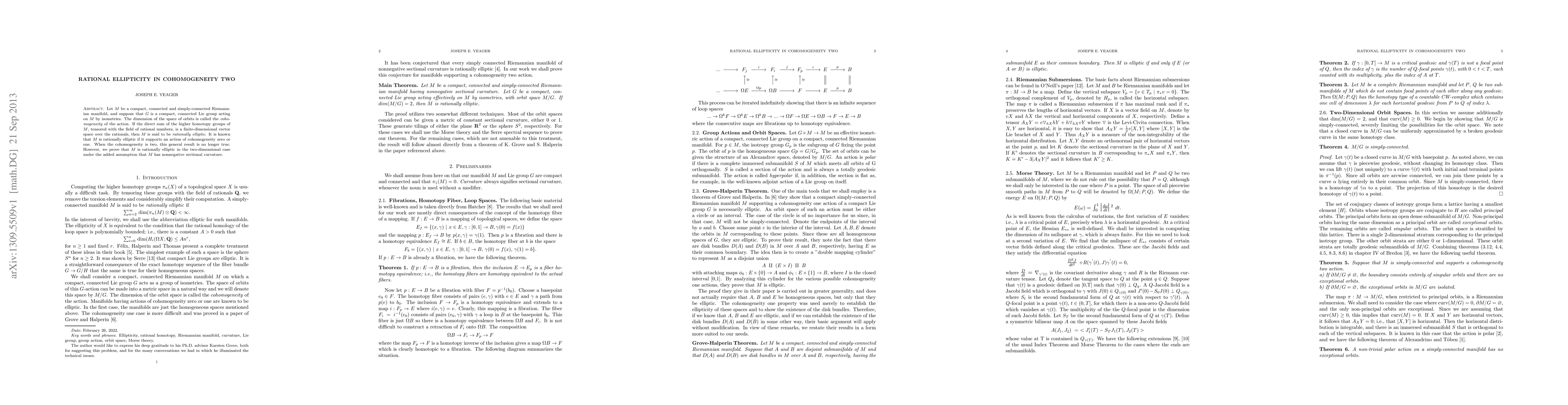 Let M be a compact, connected and simply-connected Riemannian manifold, and suppose that G is a compact, connected Lie group acting on M by isometries. The dimension of the space of orbits is called the cohomogeneity of the action. If the direct sum of the higher homotopy groups of M, tensored with the field of rational numbers, is a finite-dimensional vector space over the rationals, then M is said to be rationally elliptic. It is known that M is rationally elliptic if it supports an action of cohomogeneity zero or one. When the cohomogeneity is two, this general result is no longer true. However, we prove that M is rationally elliptic in the two-dimensional case under the added assumption that M has nonnegative sectional curvature.