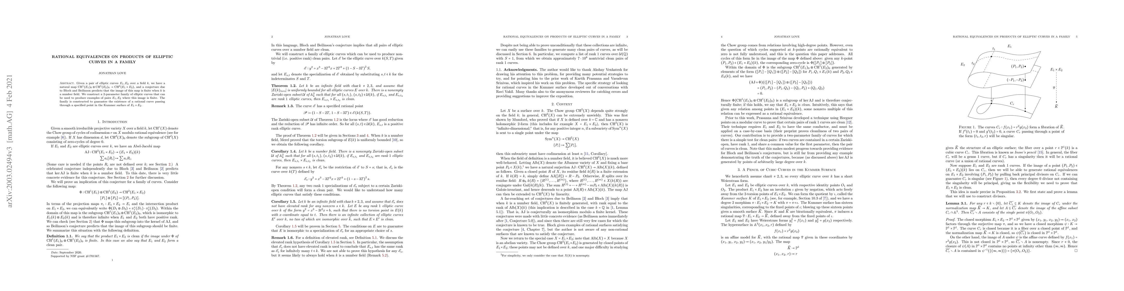 This paper constructs a 2-parameter family of elliptic curves to demonstrate a finite image under a natural map from the product of their Chow groups, supporting Beilinson's conjecture for number fields. The family is designed to include a rational curve in the Kummer surface of the product of the curves.