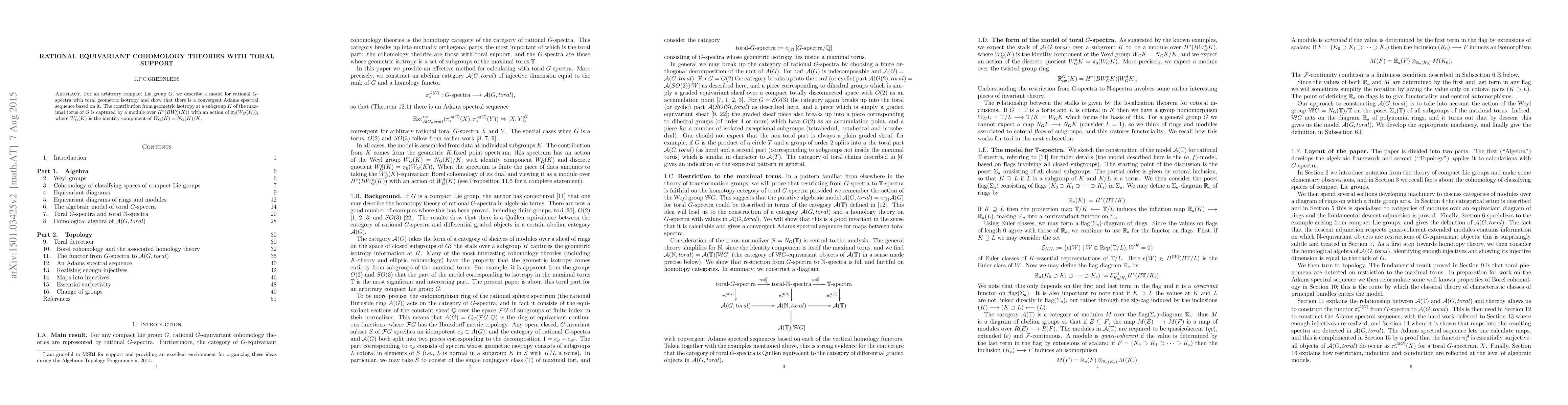 Researchers describe a model for rational G-spectra with toral geometric isotropy, enabling a convergent Adams spectral sequence to capture the contribution of geometric isotropy in compact Lie groups G.