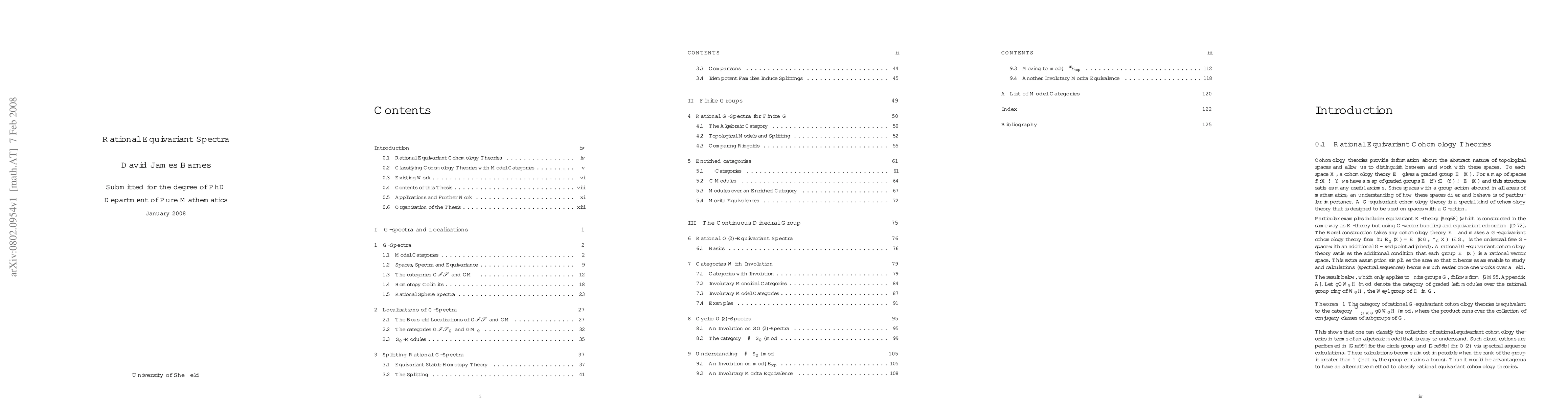 The paper develops model categories for rational equivariant spectra and shows their homotopy categories are equivalent to rational equivariant cohomology theories. It decomposes these categories using orthogonal decompositions of the rational Burnside ring and applies this to classify rational equivariant cohomology theories for finite groups and study the O(2) group.