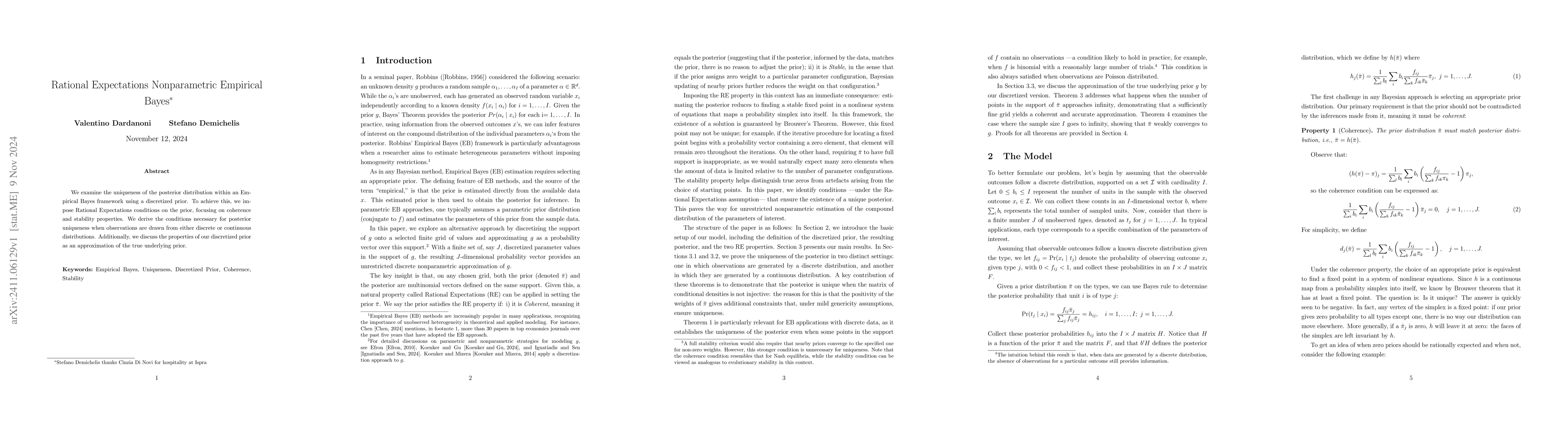 We examine the uniqueness of the posterior distribution within an Empirical Bayes framework using a discretized prior. To achieve this, we impose Rational Expectations conditions on the prior, focusing on coherence and stability properties. We derive the conditions necessary for posterior uniqueness when observations are drawn from either discrete or continuous distributions. Additionally, we discuss the properties of our discretized prior as an approximation of the true underlying prior.
