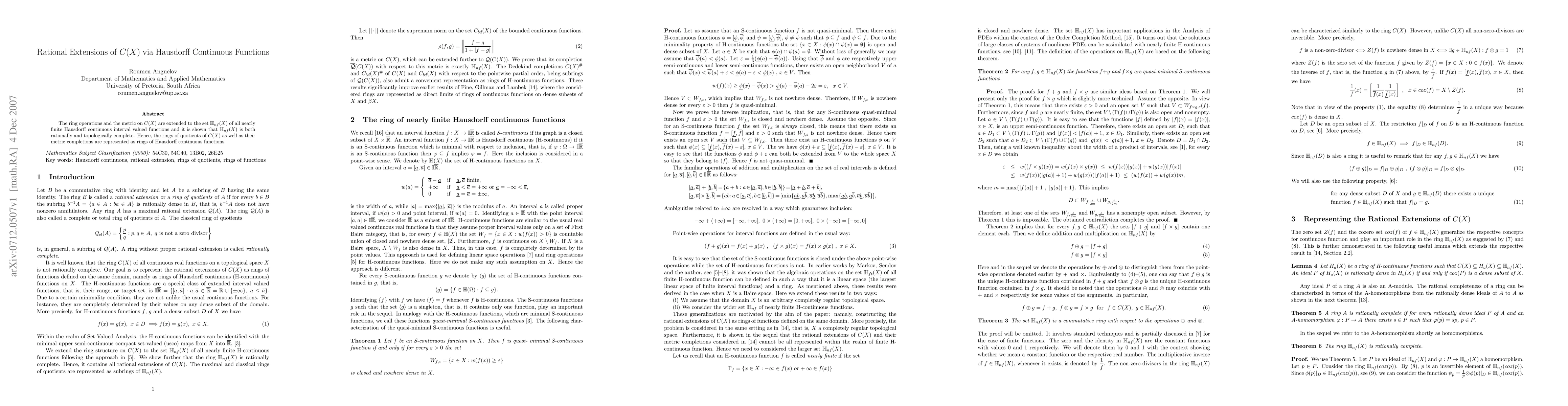 This paper extends the ring operations and metric of $C(X)$ to $\mathbb{H}_{nf}(X)$, the set of nearly finite Hausdorff continuous interval-valued functions, demonstrating its rational and topological completeness. It represents the rings of quotients and metric completions of $C(X)$ as rings of Hausdorff continuous functions.