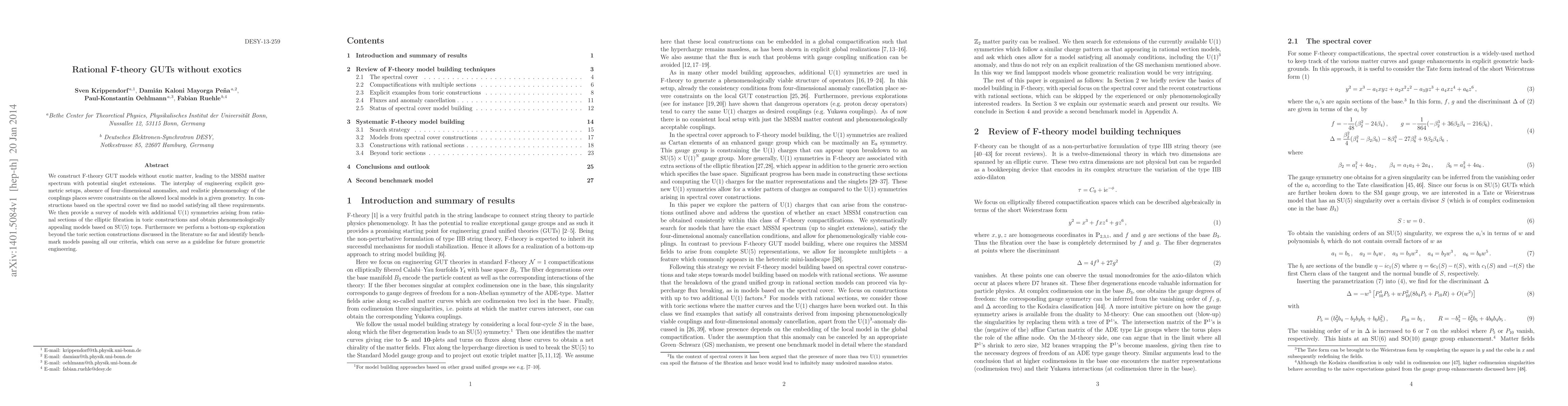 We construct F-theory GUT models without exotic matter, leading to the MSSM matter spectrum with potential singlet extensions. The interplay of engineering explicit geometric setups, absence of four-dimensional anomalies, and realistic phenomenology of the couplings places severe constraints on the allowed local models in a given geometry. In constructions based on the spectral cover we find no model satisfying all these requirements. We then provide a survey of models with additional U(1) symmetries arising from rational sections of the elliptic fibration in toric constructions and obtain phenomenologically appealing models based on SU(5) tops. Furthermore we perform a bottom-up exploration beyond the toric section constructions discussed in the literature so far and identify benchmark models passing all our criteria, which can serve as a guideline for future geometric engineering.