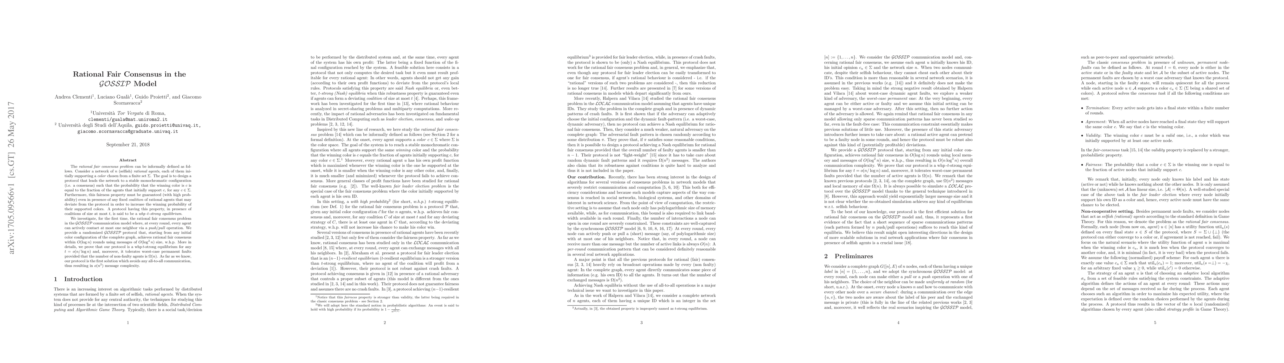 A distributed computing approach is used to achieve fair rational consensus in a network with limited memory and communication resources.