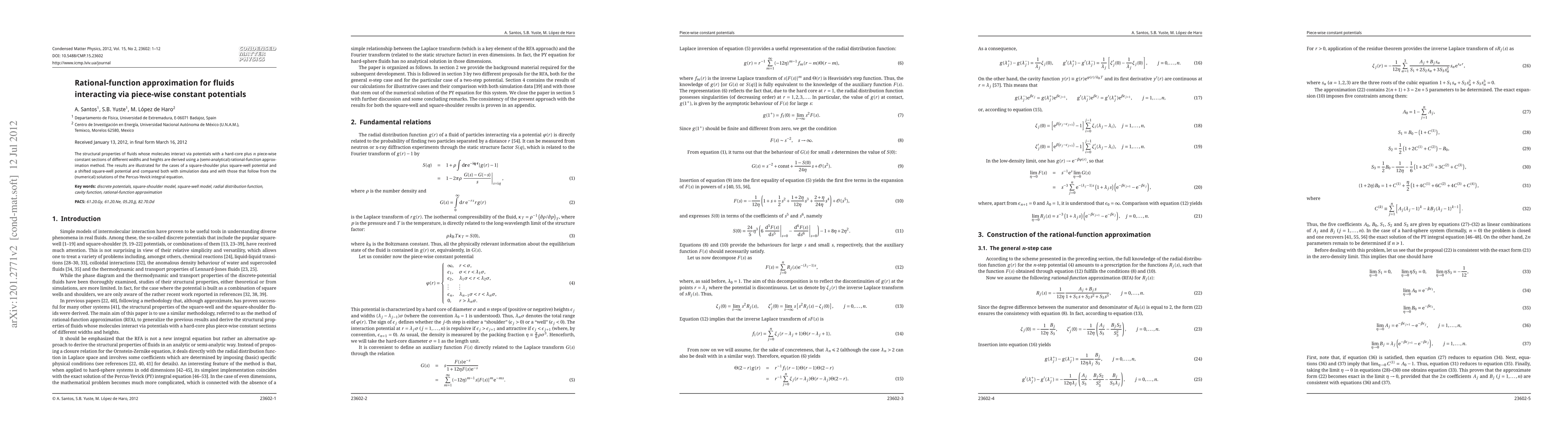 This paper develops a rational-function approximation method to derive structural properties of fluids with molecules interacting via piece-wise constant potentials. The method is demonstrated for square-shoulder and shifted square-well potentials, and results are compared with simulation data and Percus-Yevick integral equation solutions.