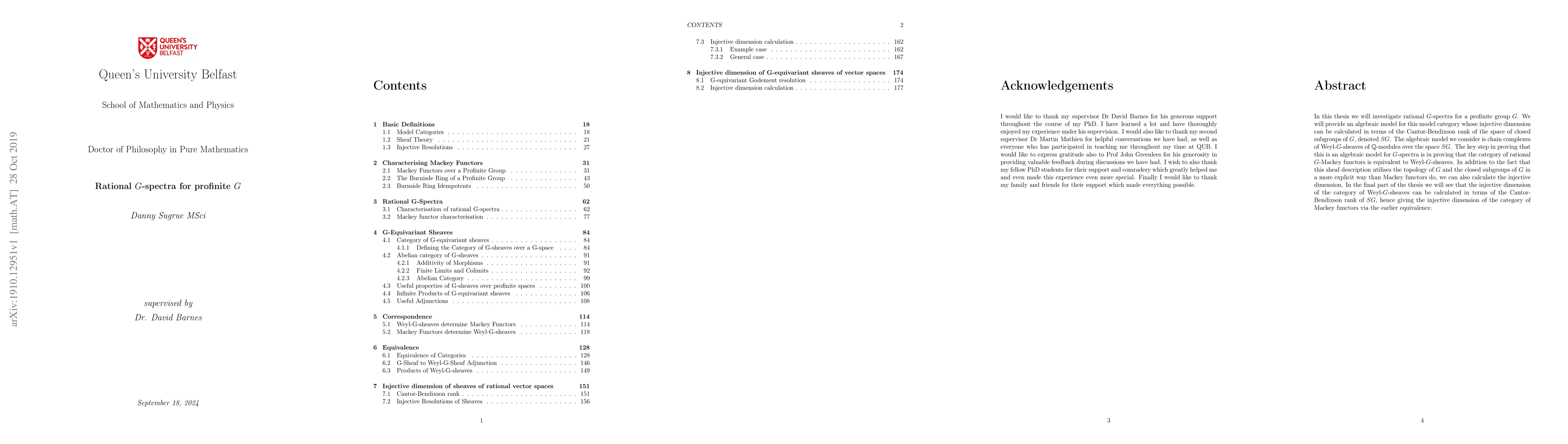 The paper introduces an algebraic model for rational G-spectra for profinite G, linking the injective dimension to the Cantor-Bendixson rank of the space of closed subgroups, and establishes an equivalence between rational G-Mackey functors and Weyl-G-sheaves.