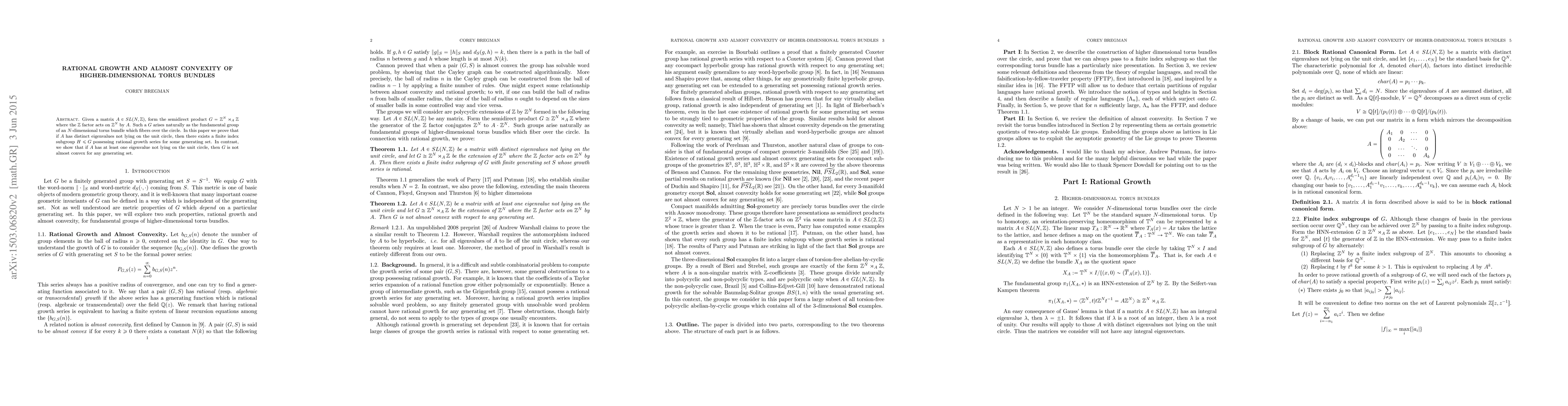 Given a matrix $A\in SL(N,\Z)$, form the semidirect product $G=\Z^N\rtimes_A \Z$ where the $\Z$ factor acts on $\Z^N$ by $A$. Such a $G$ arises naturally as the fundamental group of an $N$-dimensional torus bundle which fibers over the circle. In this paper we prove that if $A$ has distinct eigenvalues not lying on the unit circle, then there exists a finite index subgroup $H\leq G$ possessing rational growth series for some generating set. In contrast, we show that if $A$ has at least one eigenvalue not lying on the unit circle, then $G$ is not almost convex for any generating set.