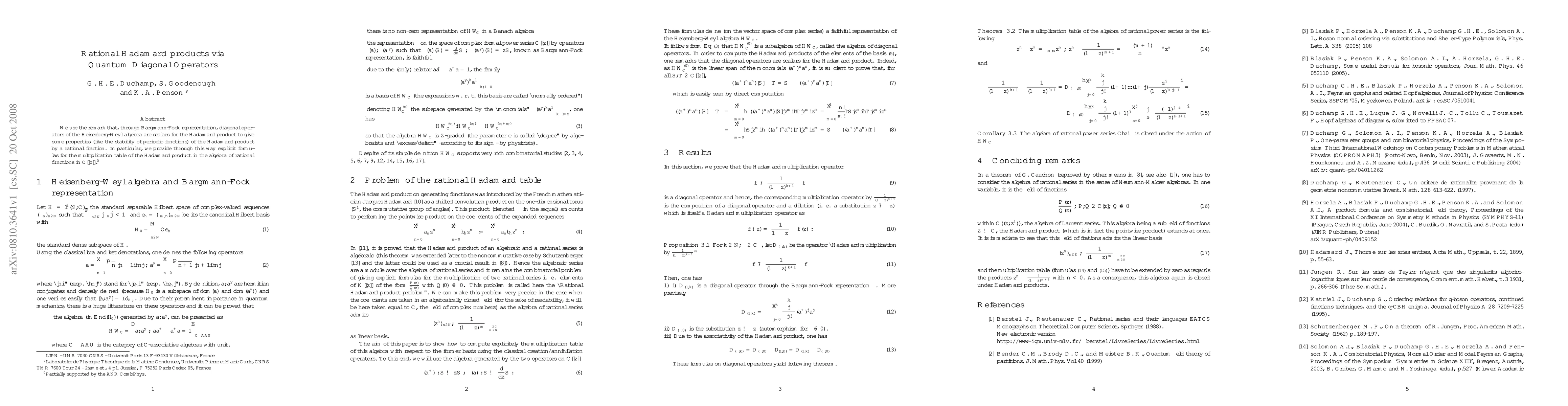 This paper provides explicit formulas for the Hadamard product of rational functions in ψ[[z]], leveraging properties derived from quantum diagonal operators, offering insights into its stability and multiplication table.