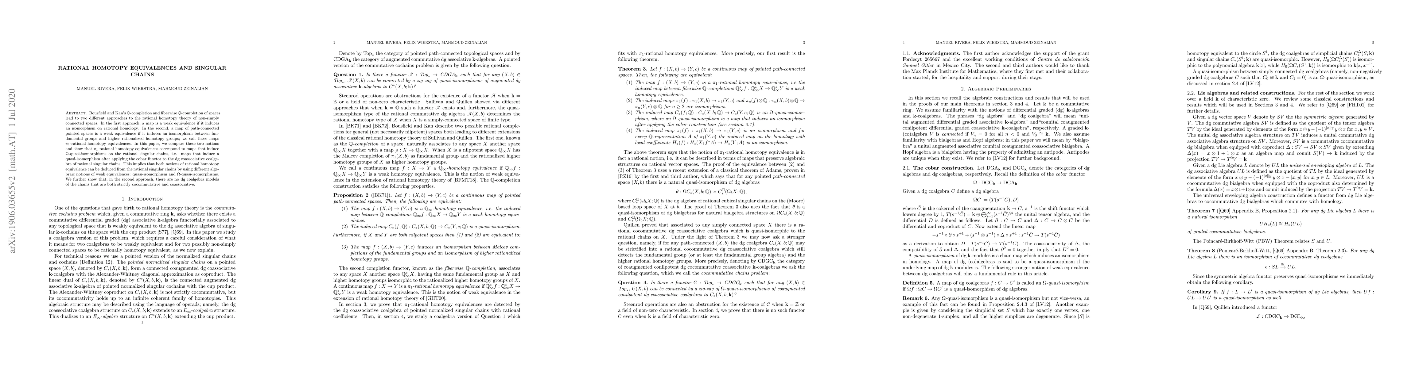 This paper compares two approaches to rational homotopy theory: one based on rational homology and the other on fundamental groups and rationalized homotopy groups. It shows that $\pi_1$-rational homotopy equivalences induce $\Omega$-quasi-isomorphisms on rational singular chains, concluding that both notions of equivalence can be deduced from these chains using quasi-isomorphisms and $\Omega$-quasi-isomorphisms. Additionally, it reveals that there are no strictly cocommutative and coassociative dg coalgebra models for the rational singular chains in the second approach.