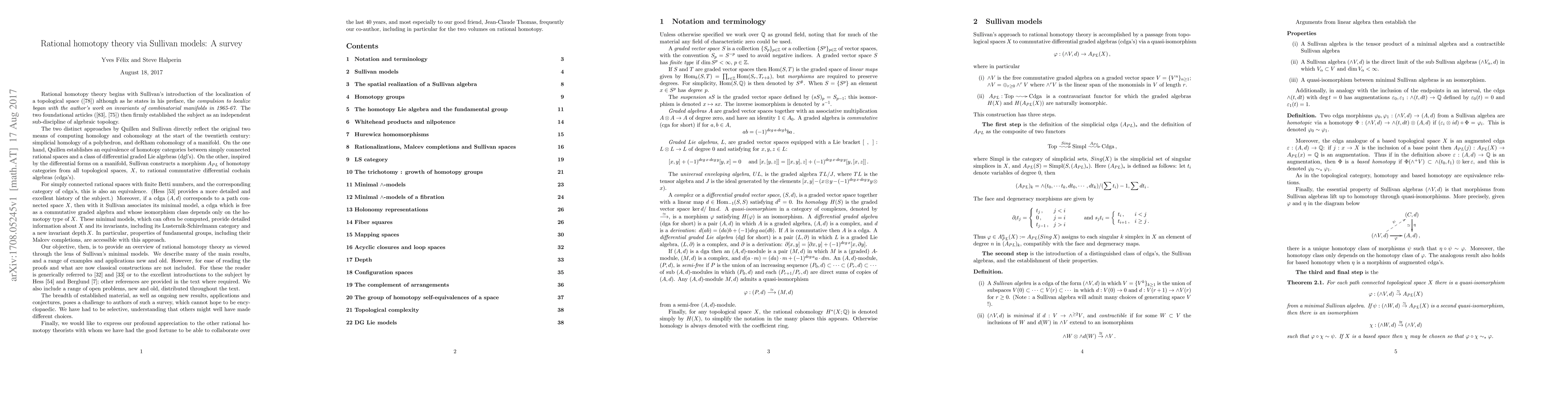 This survey contains the main results in rational homotopy, from the beginning to the most recent ones. It makes the status of the art, gives a short presentation of some areas where rational homotopy has been used, and contains a lot of important open problems