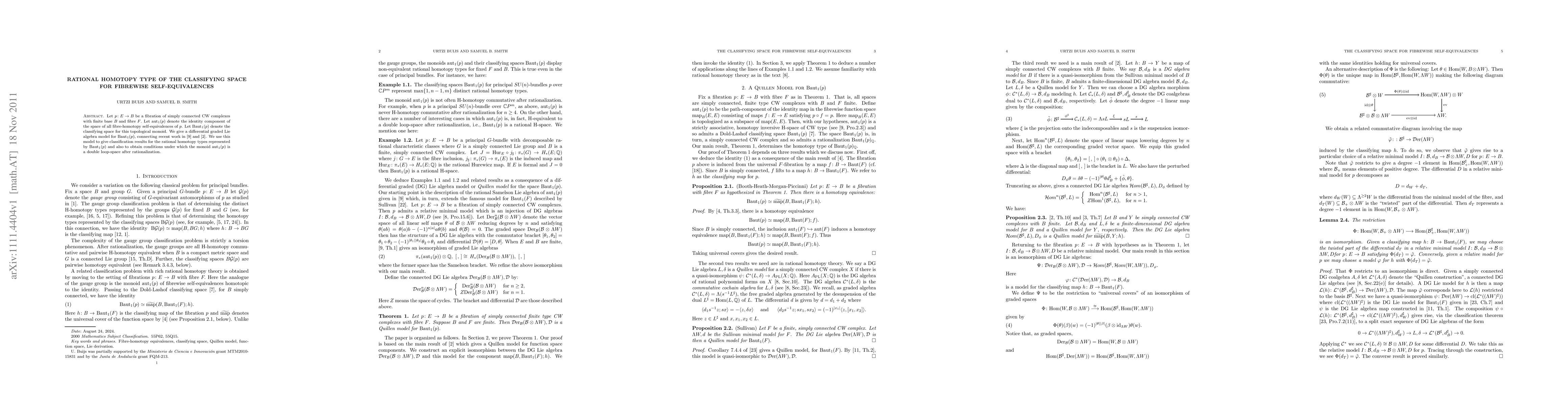 This paper presents a differential graded Lie algebra model for the classifying space of fibre-homotopy self-equivalences of a fibration between simply connected CW complexes, and uses this model to classify the rational homotopy types and determine conditions for the monoid of such equivalences to become a double loop-space upon rationalization.