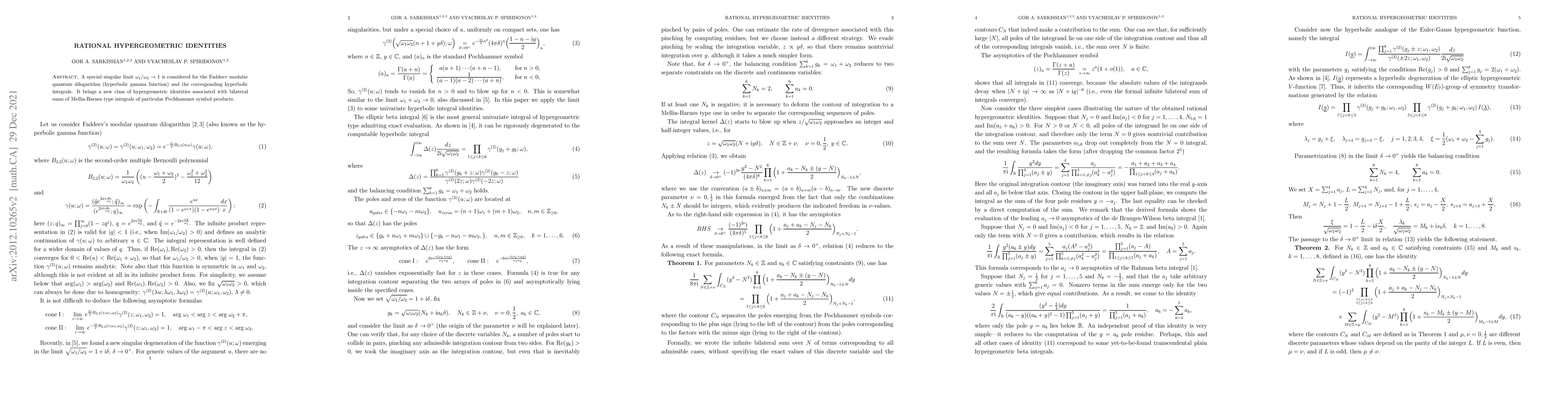 Researchers investigate a special limit of the hyperbolic gamma function that leads to new class of hypergeometric identities involving bilateral sums of Mellin-Barnes type integrals. This discovery expands our understanding of hypergeometric identities with potential applications in mathematics and related fields.
